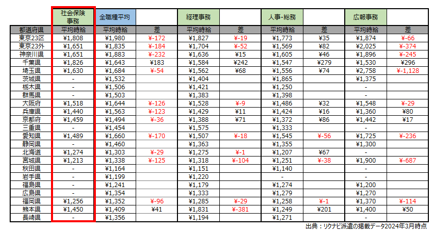 【社会保険事務】都道府県別時給一覧(2024年3月時点)