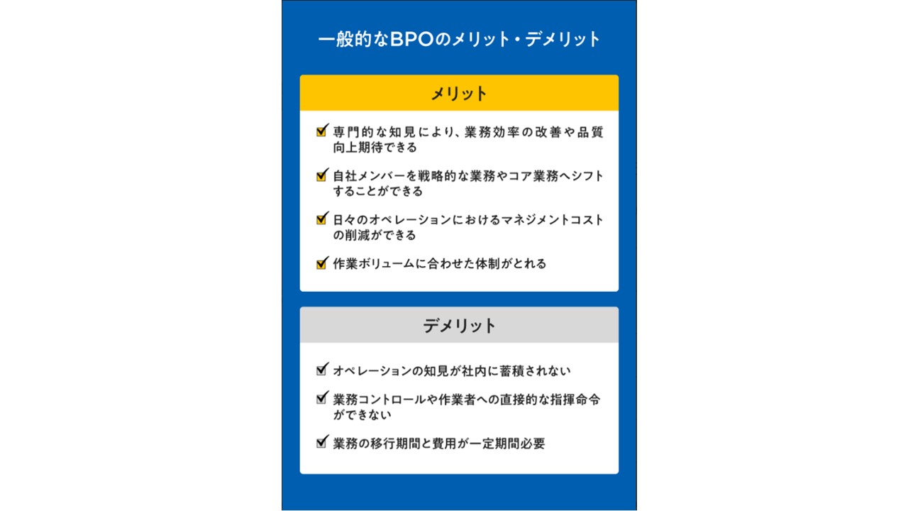 場合によっては、BPOではなく、「派遣社員に来てもらったほうがいい」「ツール導入で解決できそうだ」という結論に至ることもあるという。