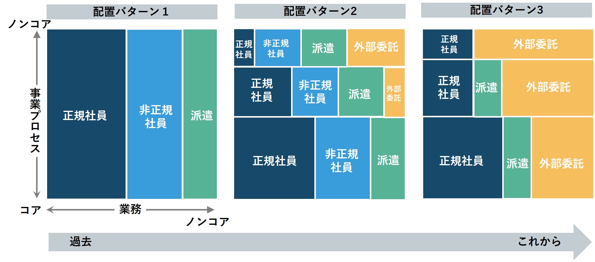 「コア業務は社内で、ノンコア業務は外部に」という縦割りの分け方ではなく、「この業務を任せるには誰が最も適しているのか」という視点から、社内外の人材を活用するチーム形成が求められています。柔軟な体制を整えることで、より多様性を活かした組織づくりが可能となるでしょう。