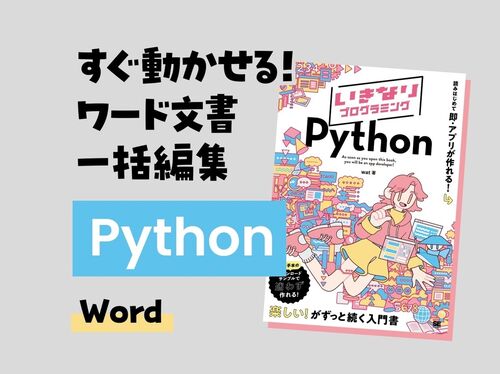 Pythonを実際に動かしてみよう!今回のお題は、Python×Word。ビギナーも取り掛かりやすい、サンプルコードとライブラリをご紹介します。【読むだけでも、なるほど】と思っていただけるよう、関連トピックも多く記載。プログラムでWordファイルを一括編集する…