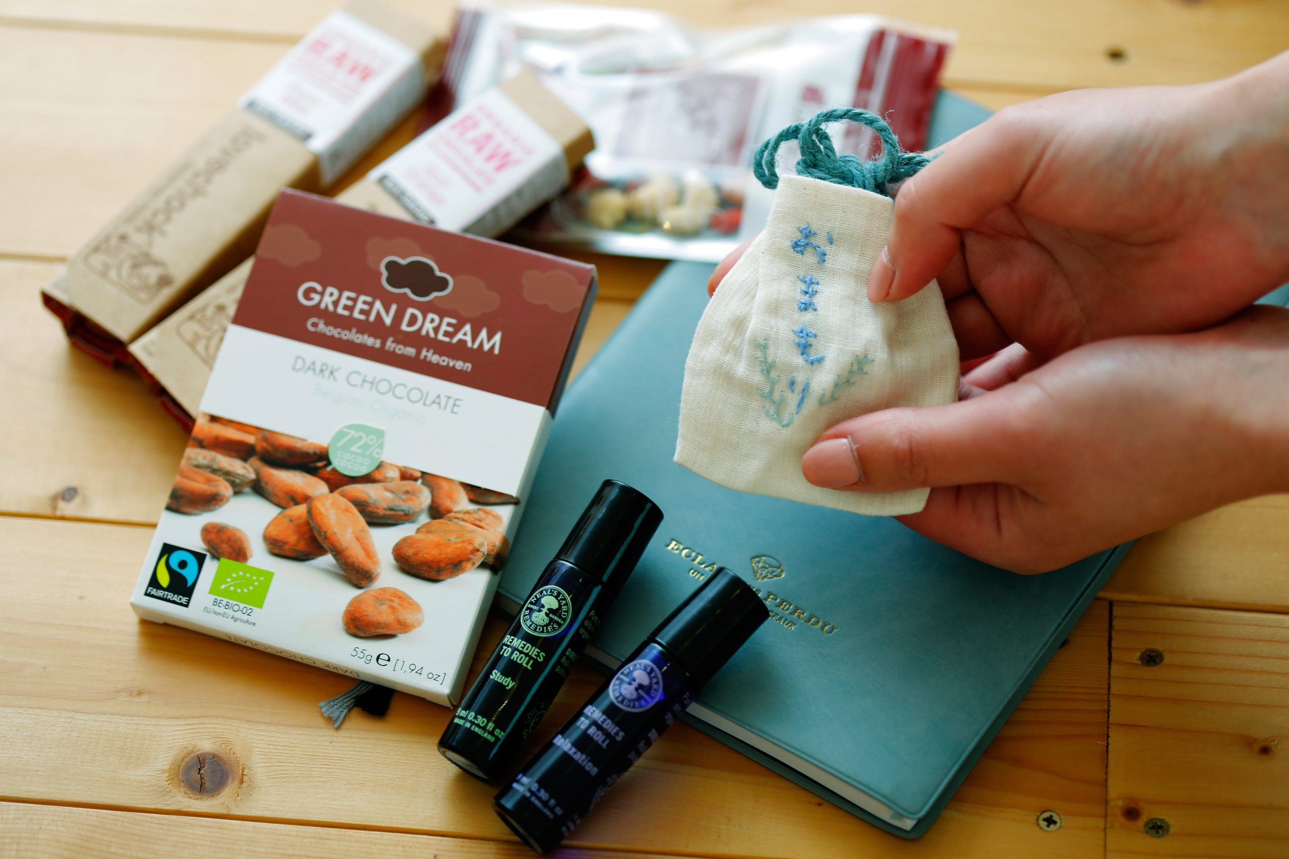 ローチョコレートやナッツなどは、レッスン前、食事する時間が取れないときに口にするもの。種類は気分によって変えているそう。