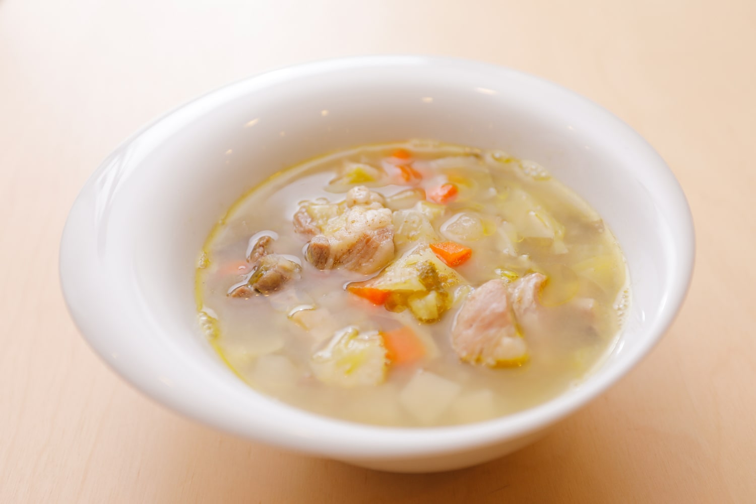 「肉や魚、豆などのたんぱく質と野菜をいっしょにしたスープなら、ひと皿で充分。後は、ごはんやパンを添えれば、おなかも満足で、栄養的にもバランスのよい献立になります」