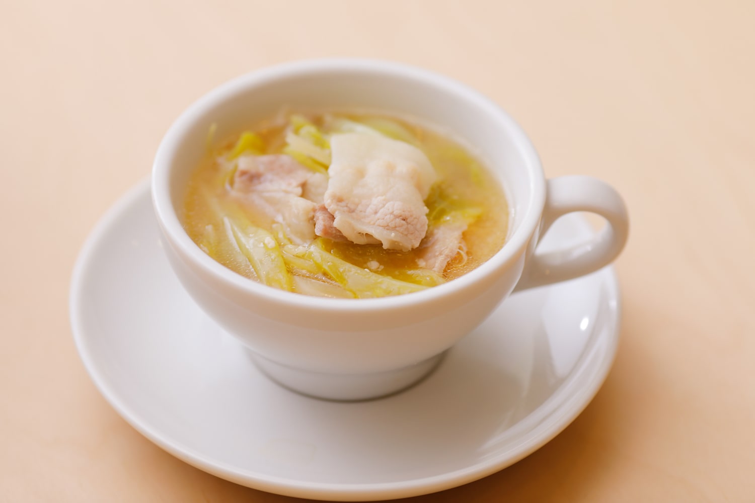 ☆『豚肉とキャベツのあまざけみそ汁』~肉1品、野菜1品で、だしも不要