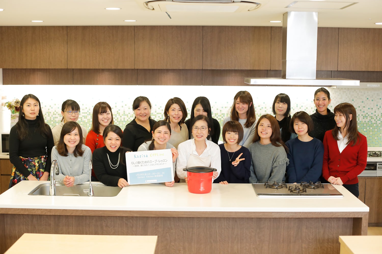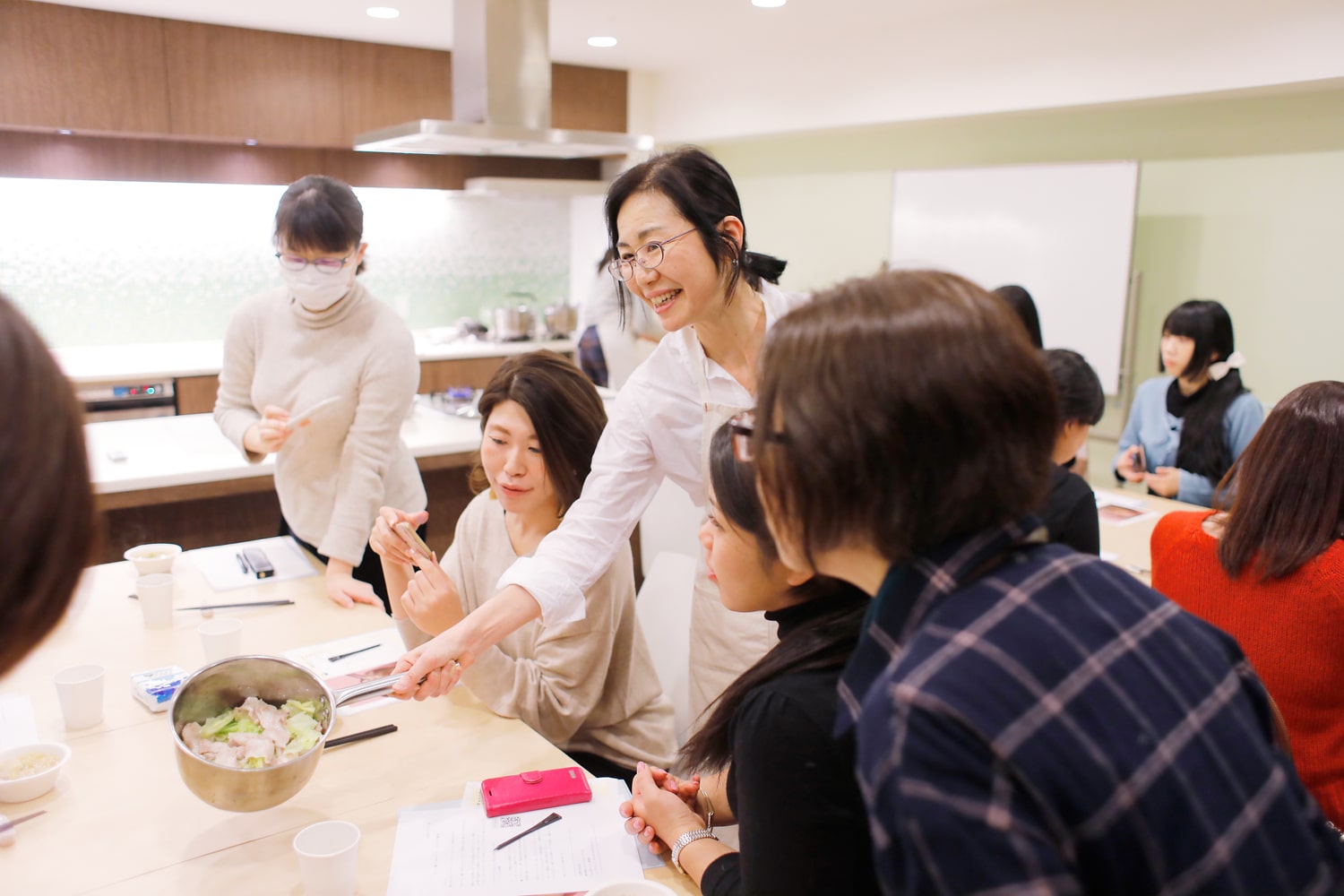 講義の合間にふるまわれた『豚肉とキャベツのあまざけみそ汁』と『塩豚とじゃがいも、レンズ豆のスープ』に、「すごくおいしい!」「からだの芯から温まる」「やさしい味で癒される」と、参加者から大きな歓声が。「働く女性にしっかりごはんを食べてほしい」と願う有賀さんの“母心”あふれるお話と、家に帰ってすぐに試してみたくなるようなプチ情報満載のレッスンは、温かく和やかなムードのうちに幕を閉じた。