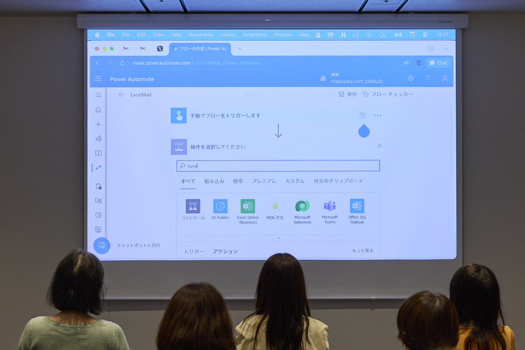 セミナーでは次に増井さんがスクリーンにデモンストレーションを映し出しました。最初に紹介したのはExcel。Microsoft Officeが入っているパソコンであれば特別なツールのインストールは不要であるため、すぐに利用できます。