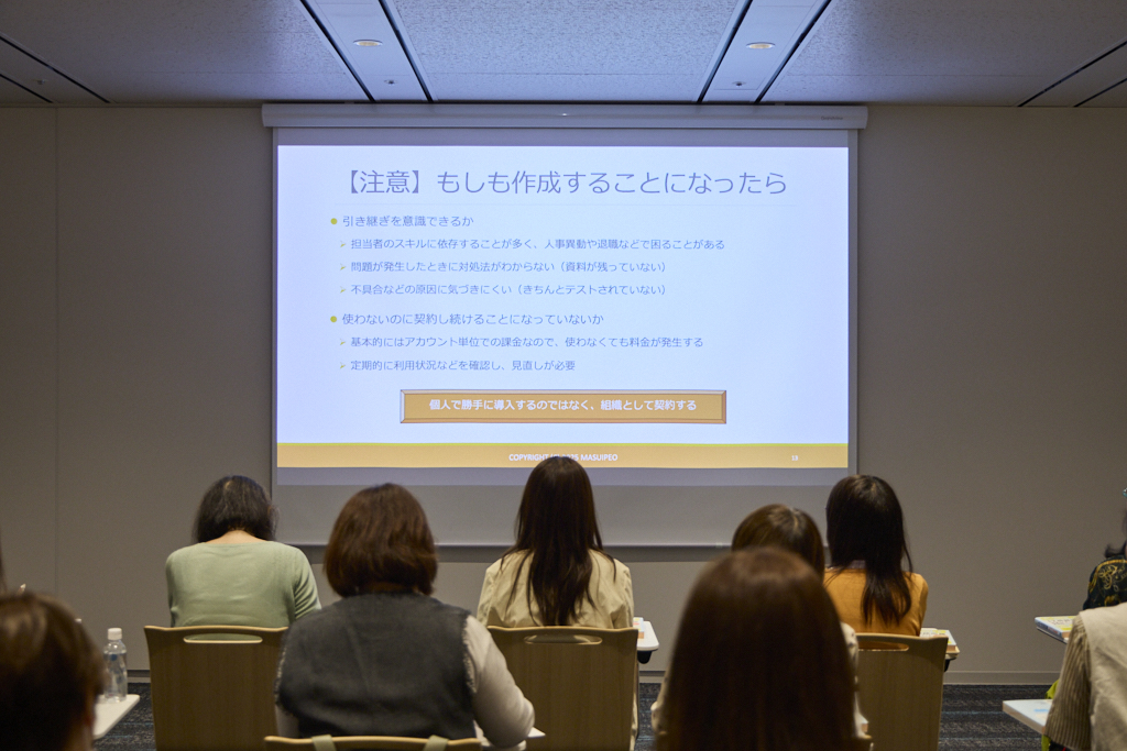 「トラブルが起こらないようにするためには、元データに直接手を加えさせないことが重要です。入力フォームなどを用意して、ボタンを押すだけで間違いなくデータが登録される仕組みを整えましょう」と増井さん。