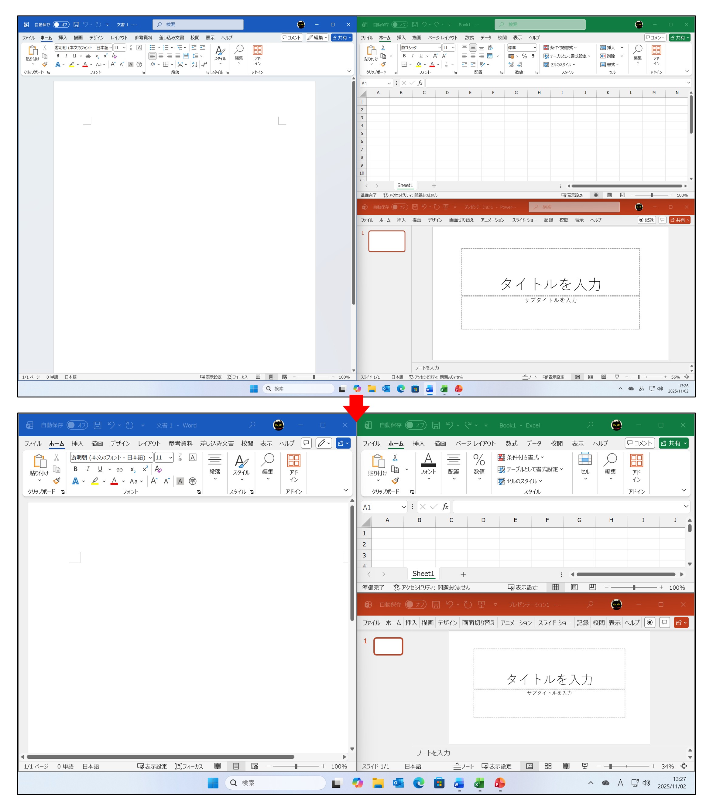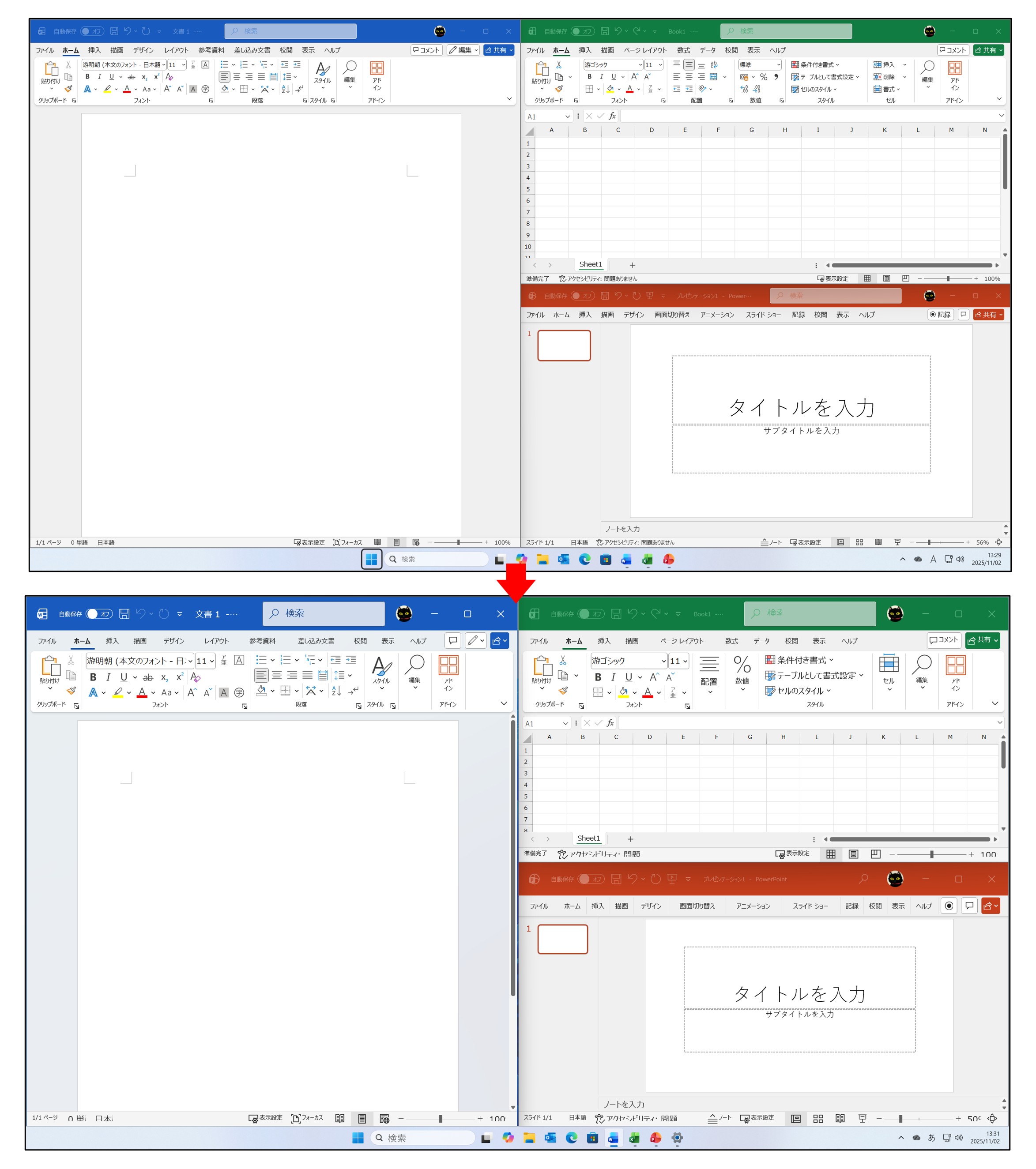 ・Officeアプリのリボンやその他の表示を拡大する