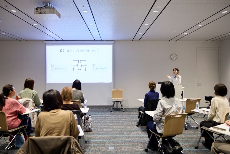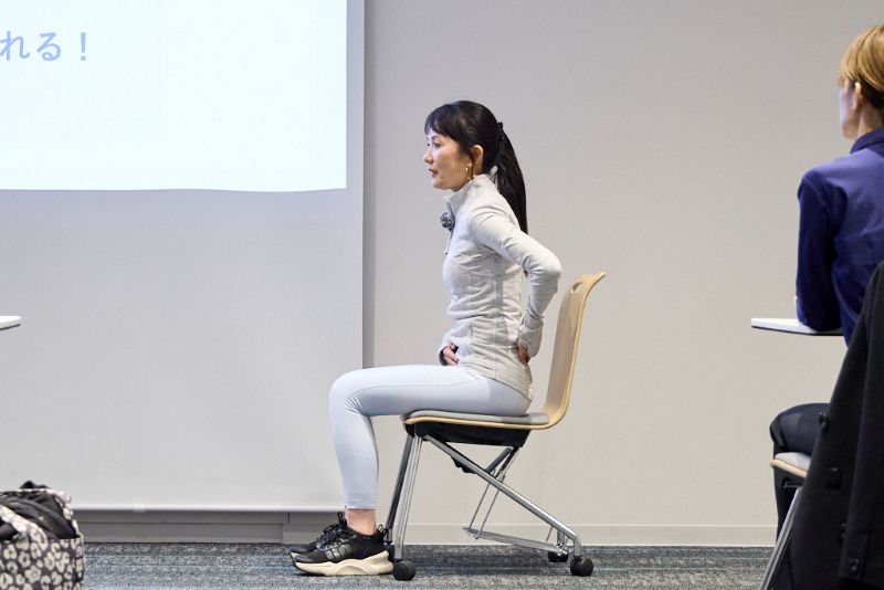 デスクワークをしていると、「座っているだけで疲れる」と感じませんか?パソコンを使って同じ姿勢をとり続けていると疲れを感じやすくなるとも言われています。そのメカニズムと改善方法を、ピラティストレーナーのTOMOKOさんがレクチャーするイベントを行いました。