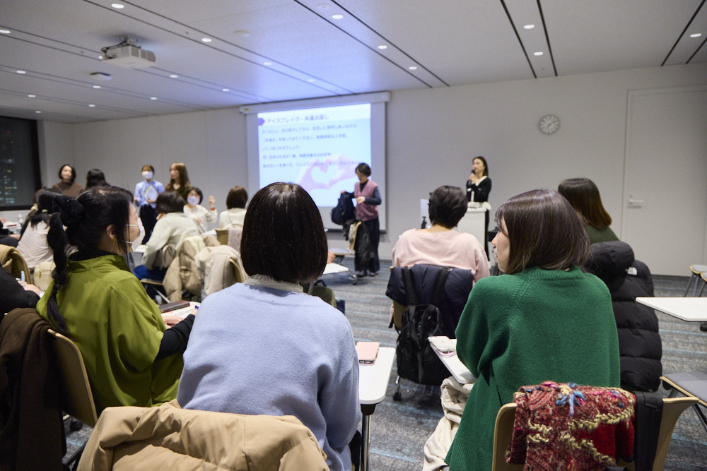 イベントのスタートは、周囲の人と話しやすくなるようにアイスブレイクの時間。3~4人のグループとなり、どんなことでもいいので共通点を3つ見つける、という内容でした。たくさんのことを話すほど共通点が見つかるとあって、活発に話をする様子が見られました。