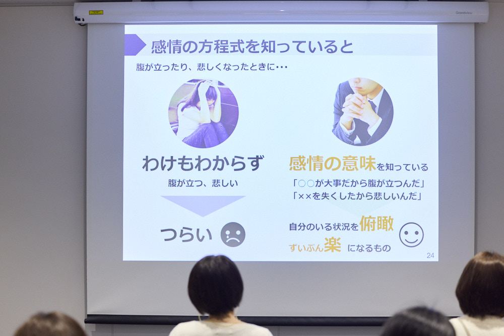 「感情の方程式を知っていると、自分を俯瞰してとらえやすくなります。理由がわかるだけでも気が楽になり、次の行動のヒントも得られて、感情に折り合いをつけやすくなります」