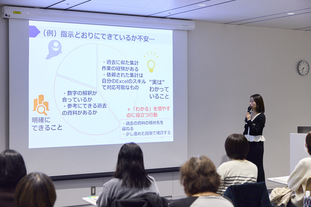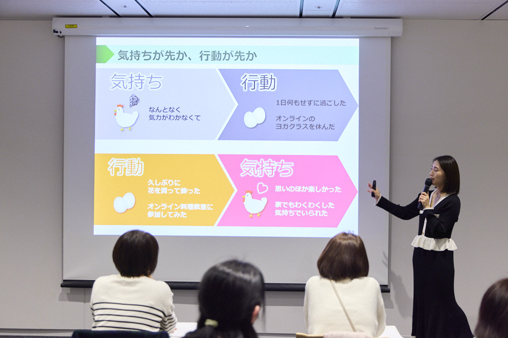 そこで、感情と上手につきあうためのヒントを紹介するイベントを開催しました。心理学博士で『コラム・らしく働く相談室』の筆者でもある関屋裕希さんがわかりやすく解説。さらに、個人ワークと少人数グループワークも実施し、参加者の方々に体感していただきました。