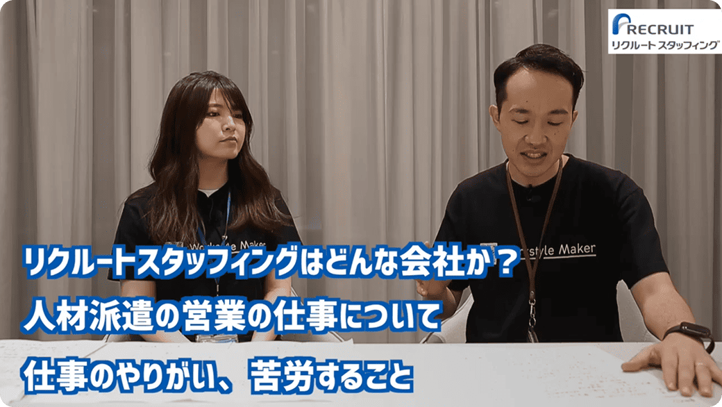 リクルートスタッフィングの派遣サービスでは、企業と派遣スタッフの双方が安心して働けるよう、さまざまな職務が連携しながらサポートを行っています。お仕事の紹介やマッチングを担う職務、就業後のフォローを行う職務、企業の人材課題を解決に導く職務など、それぞれが異なる役割を持ちながら、一人ひとりの「はたらく」を支えています。